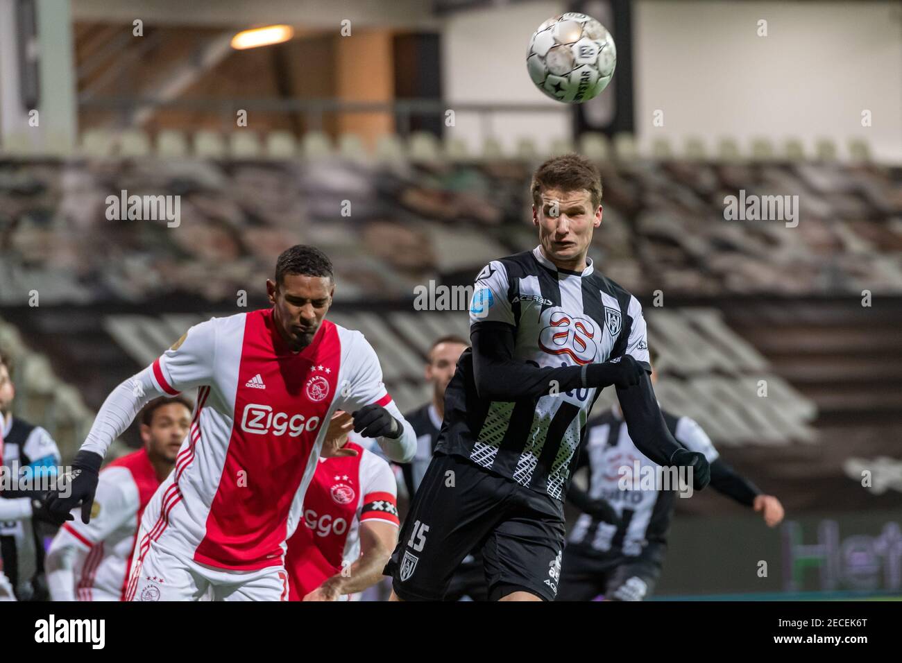Almelo 13 02 2021 Erve Asito Stadium Season 2020 2021 Dutch Eredivisie Football Between Heracles Almelo And Ajax Ajax Player Sebastien Haller Heracles Almelo Player Lucas Schoofs Photo